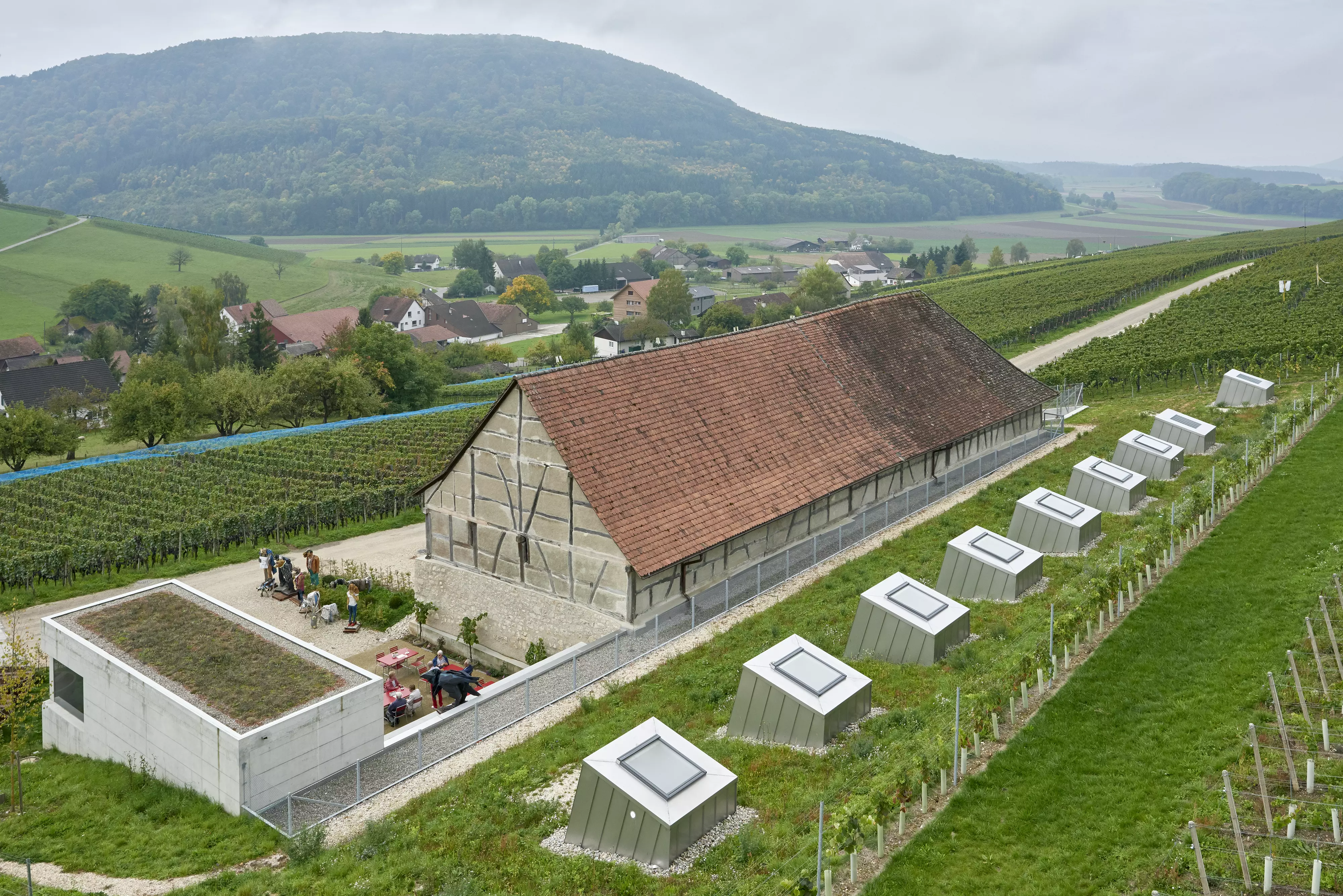 Starý lis na víno byl přesunut z rohu stodoly do vlastní nové betonové místnosti na východní straně stodoly, aby si ji mohli prohlédnout všichni kolemjdoucí. Velkorysý prostor mezi tímto novým prostorem a stodolou vede ke vchodu a slouží jako venkovní prostor pro restauraci. V západní části je umístěn samostatný technický vchod pro kuchyň a personál. V nové podzemní části se nachází restaurace, společenská místnost, kuchyň a veškeré potřebné technické zázemí, vše umístěné podél velkolepé chodby, která ukazuje souběh staré a nové budovy.